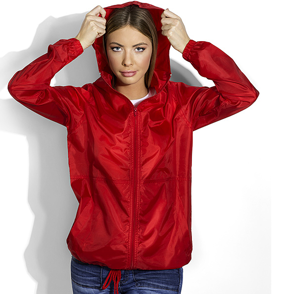 Vetrovka, visoka kragna, kapuljača savijena u kragni, koja je zatvorena čičak trakom, dva prednja džepa, elastične ranfle na rukavima, učkuri za podešavanje u dnu